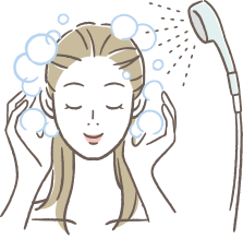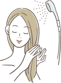 すすぎ残しがないよう髪と頭皮を十分に洗い流してください。