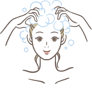 適量を手にとり、髪全体に広げながらよく泡立てて洗います。