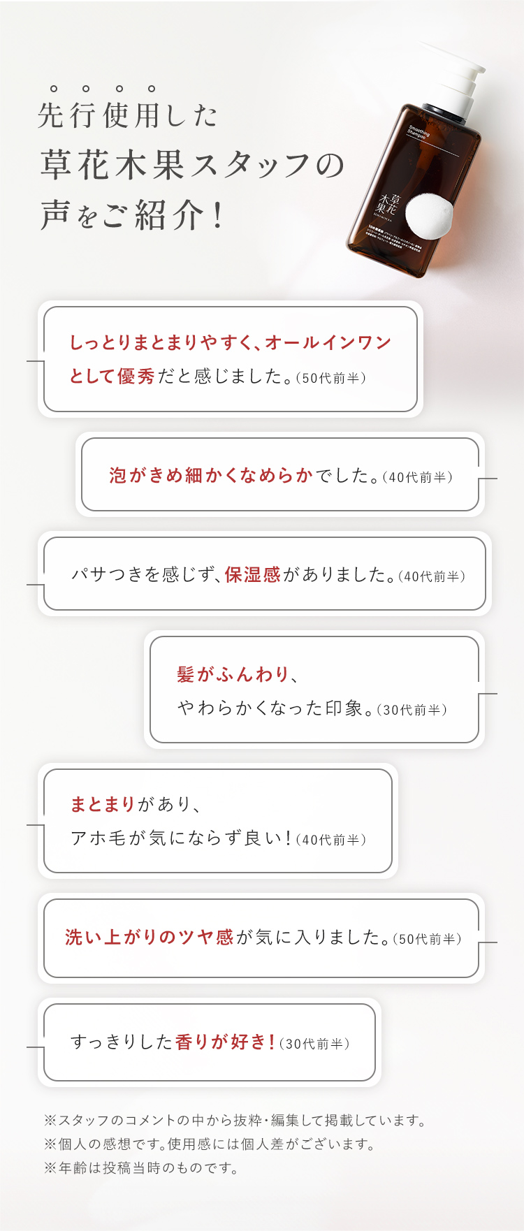 ・草花木果 スムージングシャンプー 400mL(約2ヶ月分※)1本 ・スカルプブラシ 1個 / 非売品
