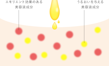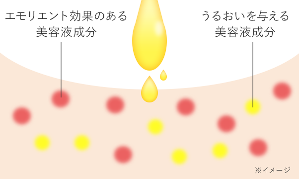 うるおいを与える美容液成分と、うるおいを保持するエモリエント効果のある美容液成分で、ダメージを受けやすい日中の肌を乾燥から守ります。