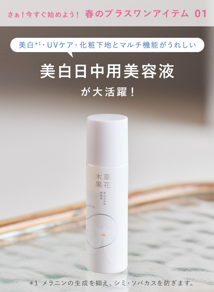 販売名:草花木果 美白日中用美容液 容量:25mL(約80回分) 商品番号:10069