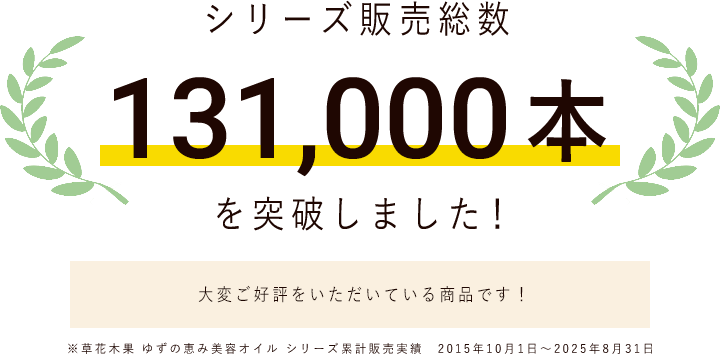 *1 水を含む *2 草花木果 ゆずの恵み美容オイル シリーズ累計販売実績 2015年10月1日~2025年8月31日