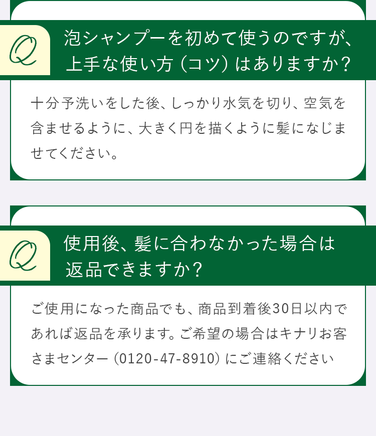 商品・美容に関するご相談のお問い合せは、キナリお客さま相談室(0120-47-3999)までお電話ください。月~金/9:00~18:00、土/9:00~17:00、日・祝日/休み