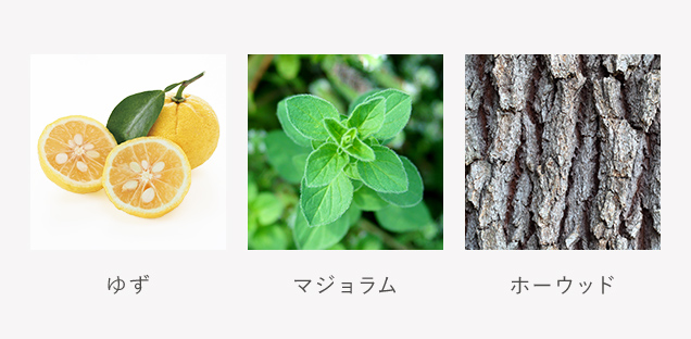 日本有数のゆず産地、高知県の安芸郡安田町中山地区で有機栽培されたゆずをベースに、柑橘系のみずみずしい香りが心地よく調和し、マジョラムのハーブの軽やかさ、ホーウッドやフランキンセンスなどの木の幹をイメージさせるウッド調の香りを纏わせた、リラックス感のある香りです。
