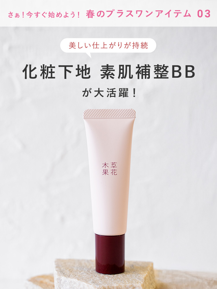 いつも『草花木果』商品をご愛用いただき、誠にありがとうございます。 2022年2月、ベースメイクシリーズがリニューアル発売! パッケージを、より上品で洗練されたデザインに一新。 さらに、一部の商品におきましては、いままでの使用感はそのままに、さらに肌へのやさしさにこだわり、新機能を追加いたしました。 新しい、ベースメイクシリーズにご期待ください。 なお、現在販売中のベースメイクは、在庫がなくなり次第、販売終了いたします。 現時点の終了予定日は、下記の一覧表をご覧ください。